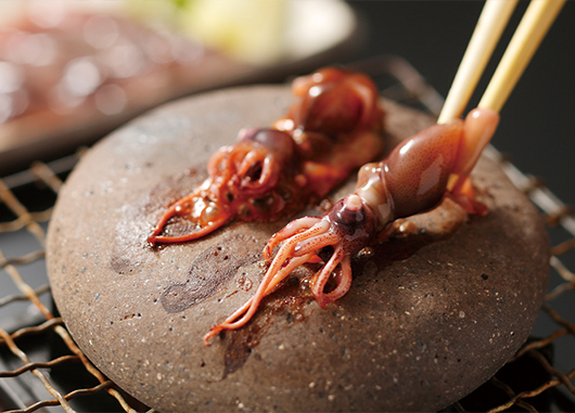 春はホタルイカ、夏はさざえ、冬は白子など名物を石焼き料理で。