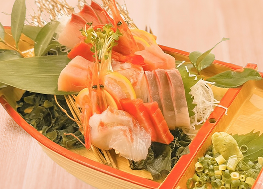 刺身:鰤や鮪、平目などその日厳選の5種盛り
