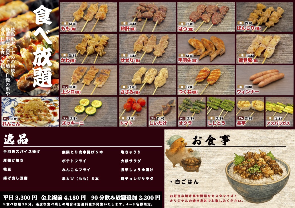金沢駅近くの焼き鳥店、五鉄で新たに食べ放題がスタート。